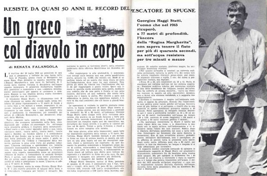 Κατόρθωσε να καταδυθεί σε βάθος 88 μέτρων και να κρατήσει την αναπνοή του για 3 λεπτά και 58 δευτερόλεπτα, έως ότου εντοπίσει την άγκυρα και τη δέσει στο ιταλικό πολεμικό πλοίο. Αμέσως μετά έδωσε το σινιάλο για να τον τραβήξουν στην επιφάνεια της θάλασσας.