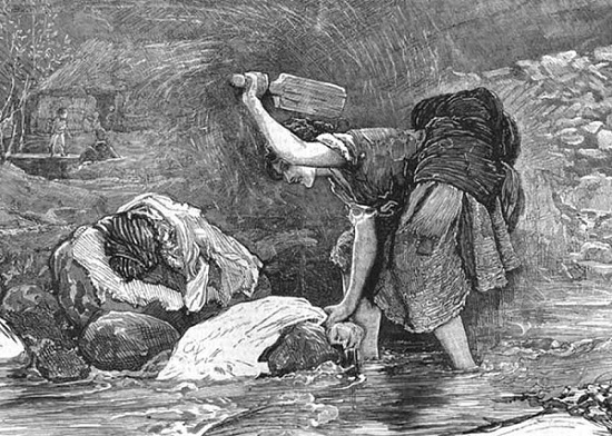 Τα μάλλινα και τα βαμβακερά υφάσματα ήθελαν από τότε την περιποίησή τους, για να παραμείνουν καθαρά και αφράτα. Ο σκλάβος (συνήθως) που αναλάμβανε την υπηρεσία του καθαριστηρίου για τα ρούχα δούλευε βυθισμένος μέχρι τον αστράγαλο μέσα σε μια γούρνα γεμάτη με ούρα και υφάσματα. Τα ούρα εκείνη τη εποχή έπαιζαν τον ρόλο του απορρυπαντικού. Ονομάζονταν «μπουγάδα», ήταν ιδιαίτερα πολύτιμα και φορολογούνταν. Καθόλου παράξενο, αφού τα αμμωνιακά άλατα βοηθούν στον καθαρισμό και τη λεύκανση των υφασμάτων.