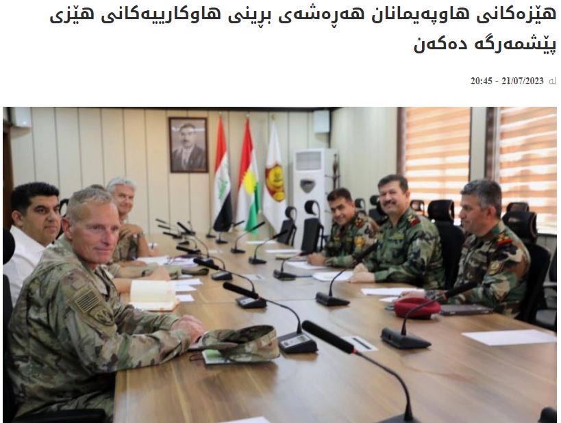 Αντιπροσωπεία υψηλού επιπέδου του Υπουργείου Άμυνας των ΗΠΑ συναντήθηκε με τον Πρωθυπουργό και τους διοικητές των Πεσμεργκά στο Ερμπίλ και τους προειδοποίησε ότι δεν μπορούν να συνεχίσουν την υποστήριξή τους εάν δεν αρθούν τα εμπόδια στην ενοποίηση των δυνάμεων των Πεσμεργκά