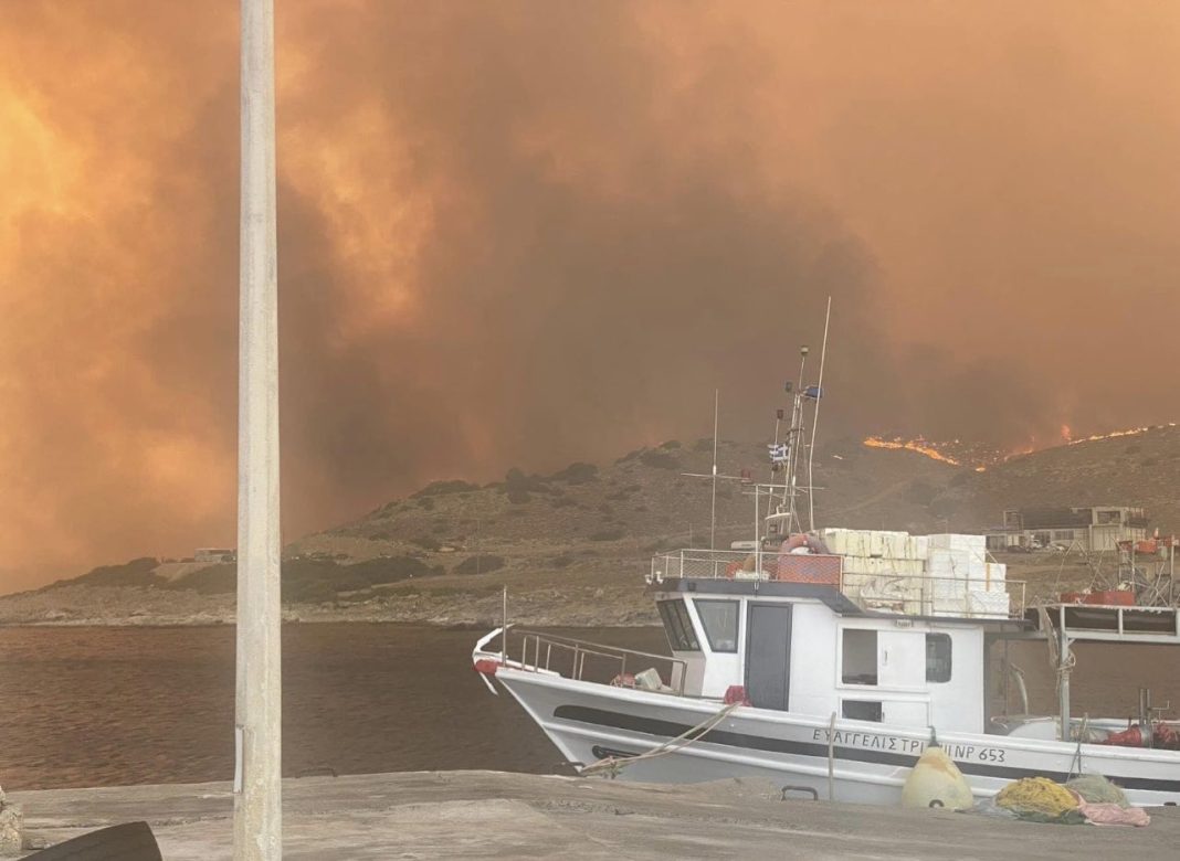 Με κάθε τρόπο τουρίστες αλλά και κάτοικοι επιχειρούν να εγκαταλείψουν τα ξενοδοχεία και τα χωριά τους, καθώς η Ρόδος φλέγεται κυριολεκτικά. Έπειτα από τέσσερις ημέρες που καιγόταν το βουνό, χωρίς να υπάρξει ικανή αντίδραση από τον κρατικό μηχανισμό, η φωτιά τέθηκε εκτός ελέγχου και απειλεί πλέον χιλιάδες ανθρώπους, οικήματα και περιουσίες.