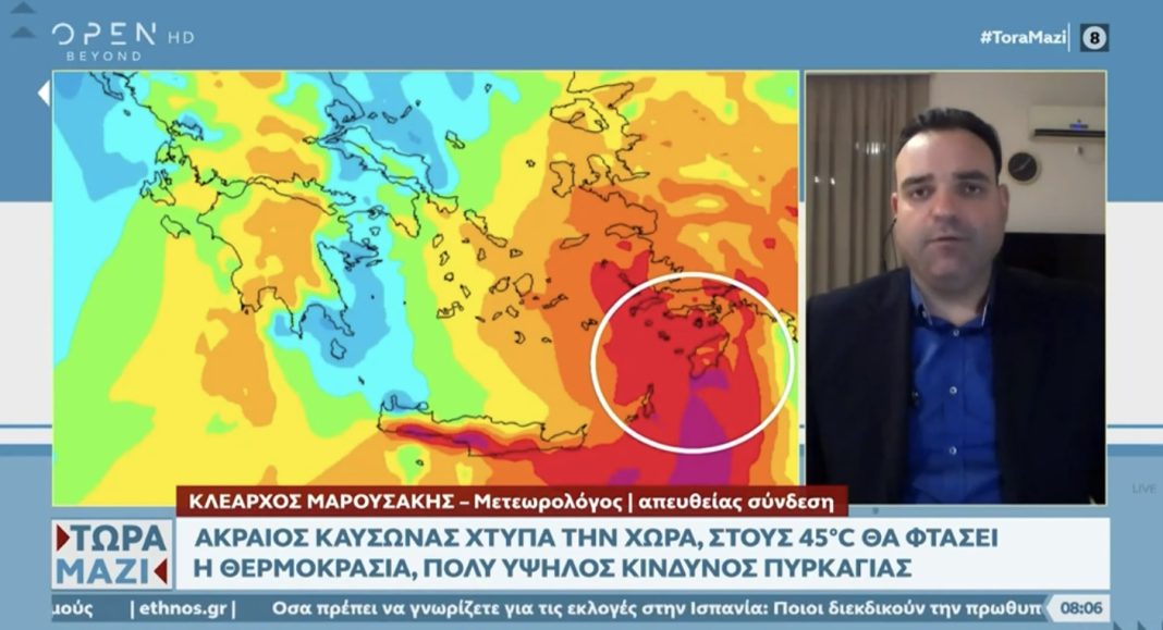 Σήμερα θα είναι η πιο θερμή ημέρα του καλοκαιριού και οι επόμενες ώρες αναμένεται να είναι αρκετά δύσκολες καθώς εκτός από τις ακραίες θερμοκρασίες θα ενισχυθούν και οι ισχυροί άνεμοι γεγονός που ευνοεί την εξάπλωση πυρκαγιών.