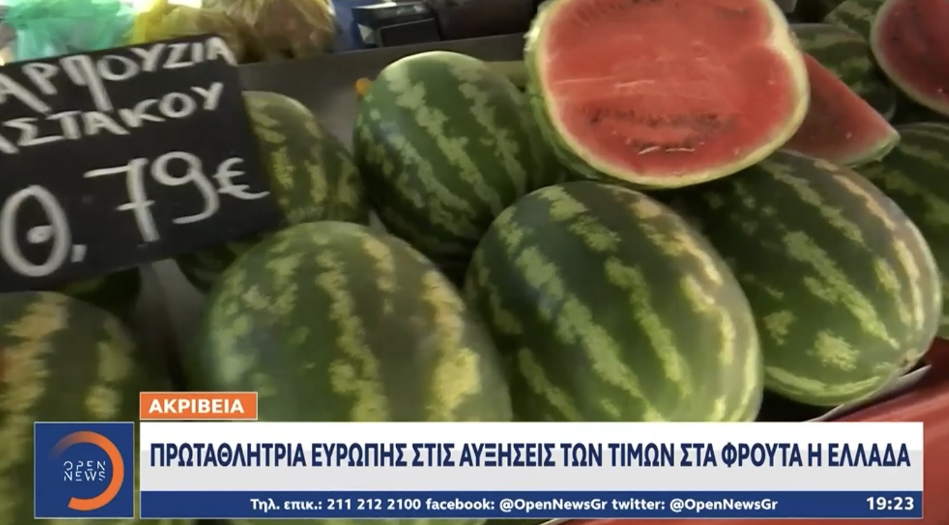 Για τον τον Ιούνιο, μάλιστα, η χώρα μας έλαβε πανευρωπαϊκό «μετάλλιο» ακρίβειας και στα φρούτα, καθώς, με βάση τα στοιχεία της Ευρωπαϊκής Στατιστικής Υπηρεσίας, στην Ελλάδα καταγράφηκε η υψηλότερη μηνιαία αύξηση τιμών σε ολόκληρη την Ευρώπη. Συγκεκριμένα, τον προηγούμενο μήνα οι τιμές των φρούτων στην Ελλάδα αυξήθηκαν κατά 24,5%, όταν στην Εσθονία, όπου καταγράφηκε η δεύτερη μεγαλύτερη αύξηση, οι τιμές ανέβηκαν κατά μόλις 7,2%!