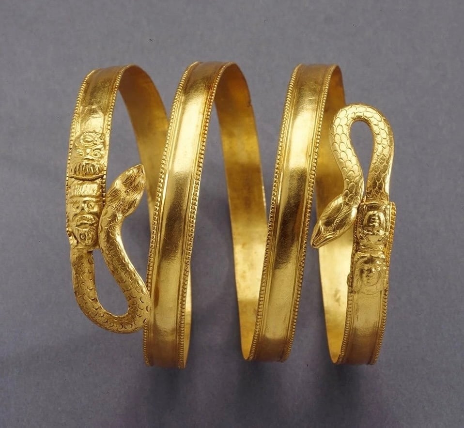 Και όμως, μέσα από αυτά τα κομψοτεχνήματα φαίνεται το ανώτατο επίπεδο του ελληνικού πολιτισμού. Το συγκεκριμένο βραχιόλι χρονολογείται από τον τέταρτο αιώνα προ Χριστού! Η λεπτομέρεια πραγματικά εκπλήσσει.