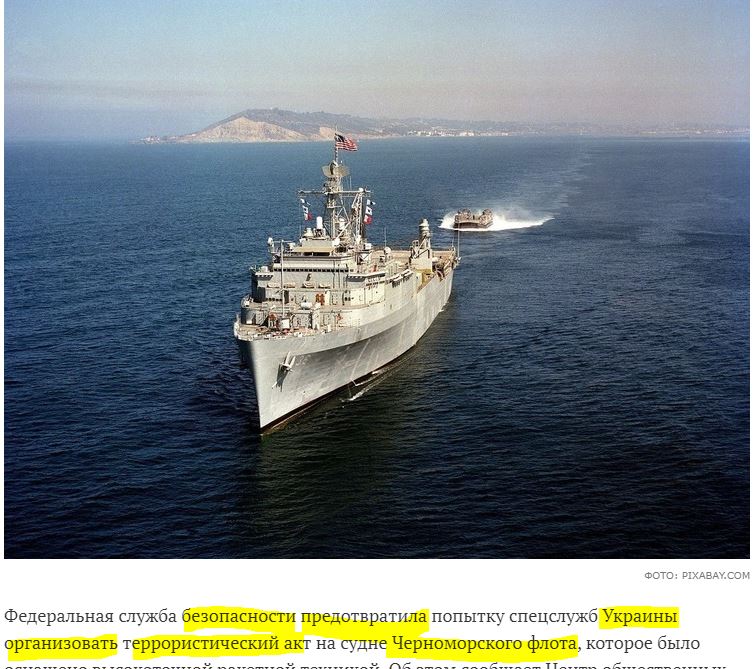 Η Ομοσπονδιακή Υπηρεσία Ασφαλείας απέτρεψε απόπειρα των ουκρανικών ειδικών υπηρεσιών να οργανώσουν τρομοκρατική ενέργεια σε πλοίο του Στόλου της Μαύρης Θάλασσας, το οποίο ήταν εξοπλισμένο με τεχνολογία πυραύλων υψηλής ακρίβειας.