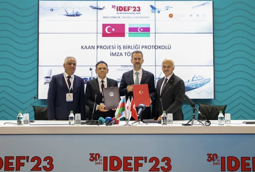 Πρωτόκολλο συνεργασίας υπογράφηκε μεταξύ Τουρκίας και Αζερμπαϊτζάν την περασμένη εβδομάδα για τη διευκόλυνση των κοινών προσπαθειών στα διάφορα στάδια παραγωγής του KAAN, του τουρκικού εθνικού και εγχώριου μαχητικού αεροσκάφους που σχεδιάστηκε για την τουρκική Πολεμική Αεροπορία.