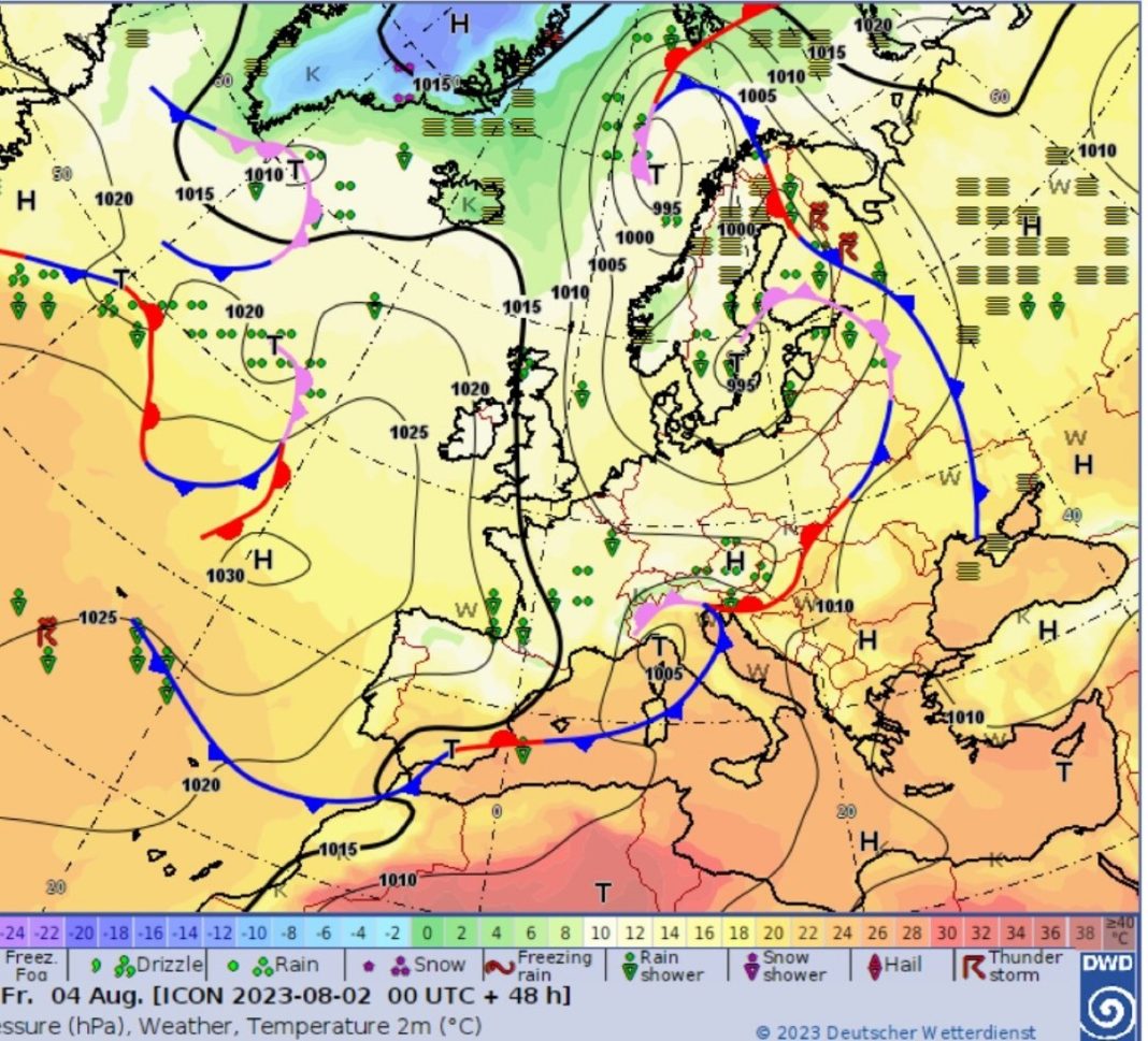 Σύμφωνα με το δελτίο, το καιρικό σύστημα κινούμενο ανατολικά, προβλέπεται να προκαλέσει πρόσκαιρη επιδείνωση του καιρού σε περιοχές της δυτικής και της βόρειας Ελλάδας, από τις μεσημβρινές ώρες του Σαββάτου 05-08-2023 έως και τις πρώτες πρωινές ώρες της Κυριακής 06-08-2023, με κύρια χαρακτηριστικά τις ισχυρές βροχές και καταιγίδες που θα συνοδεύονται από μεγάλη συχνότητα κεραυνών και τοπικές χαλαζοπτώσεις.