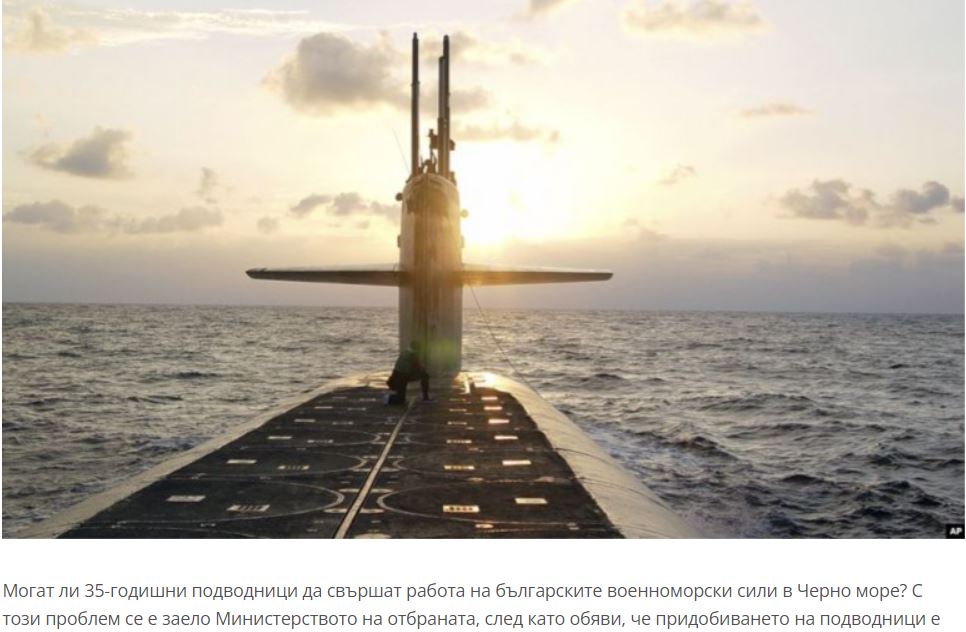 Το πρόβλημα αυτό αντιμετωπίζεται από το Υπουργείο Άμυνας αφού ανακοίνωσε ότι η απόκτηση υποβρυχίων είναι στις προτεραιότητες για τον εκσυγχρονισμό του στρατού αφού η Βουλγαρία στερείται στόλο υποβρυχίων, γράφει βουλγαρικό δημοσίευμα.