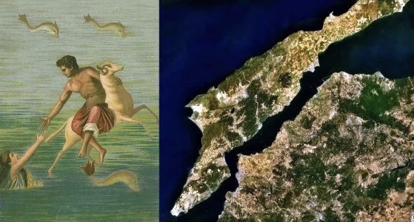 Κατά την πορεία διαφυγής τους, καθώς πετούσαν επάνω από την θάλασσα, η Έλλη δεν μπόρεσε να κρατηθεί στην ράχη του Κριού κι έπεσε στο πέλαγος, που από τότε ονομάσθηκε Ελλήσποντος. Την Έλλη πήρε κοντά του ο Ποσειδώνας. Ο Φρίξος συνέχισε την πορεία του και ο Κριός τον έφερε στην Κολχίδα, όπου ο βασιλιάς Αιήτης τον δέχθηκε πρόθυμα και του έδωσε ως σύζυγο τη θυγατέρα του, Χαλκιόπη.