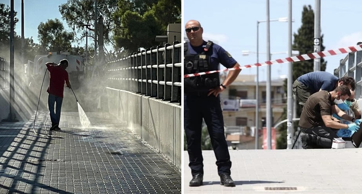 Πρώτα έπλυναν με πιεστικό τη γέφυρα στην οποία έγινε η #δολοφονια (φωτογραφία Γιάννης Κέμμος, 08:34 το πρωί) και ύστερα απέκλεισαν την περιοχή (στις 13:00) αναζητώντας στοιχεία!