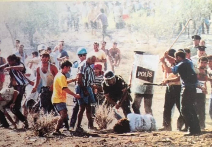 Κατευθυνόμενοι προς το αφύλακτο οδόφραγμα της Δερύνειας, οι μοτοσυκλετιστές αντίκρυσαν οργανωμένους Τούρκους και Τουρκοκύπριους, ετοιμοπόλεμους κρατώντας πέτρες και ξύλα, ρόπαλα και σιδερολοστούς.