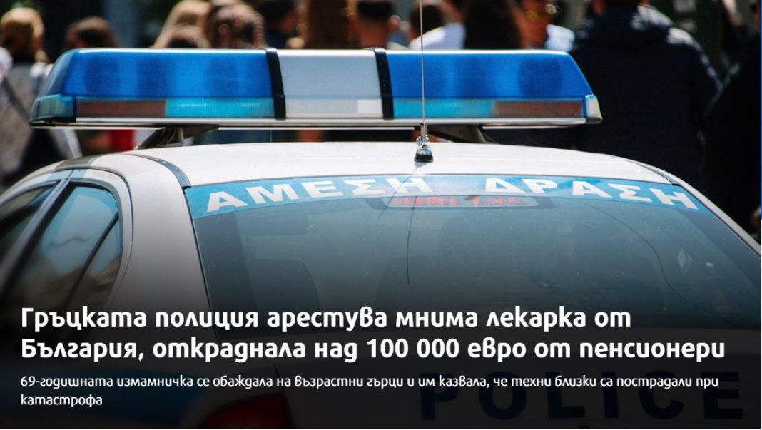 Η ελληνική αστυνομία συνέλαβε ψευτογιατρό από τη Βουλγαρία που έκλεψε πάνω από 100.000 ευρώ από συνταξιούχους.