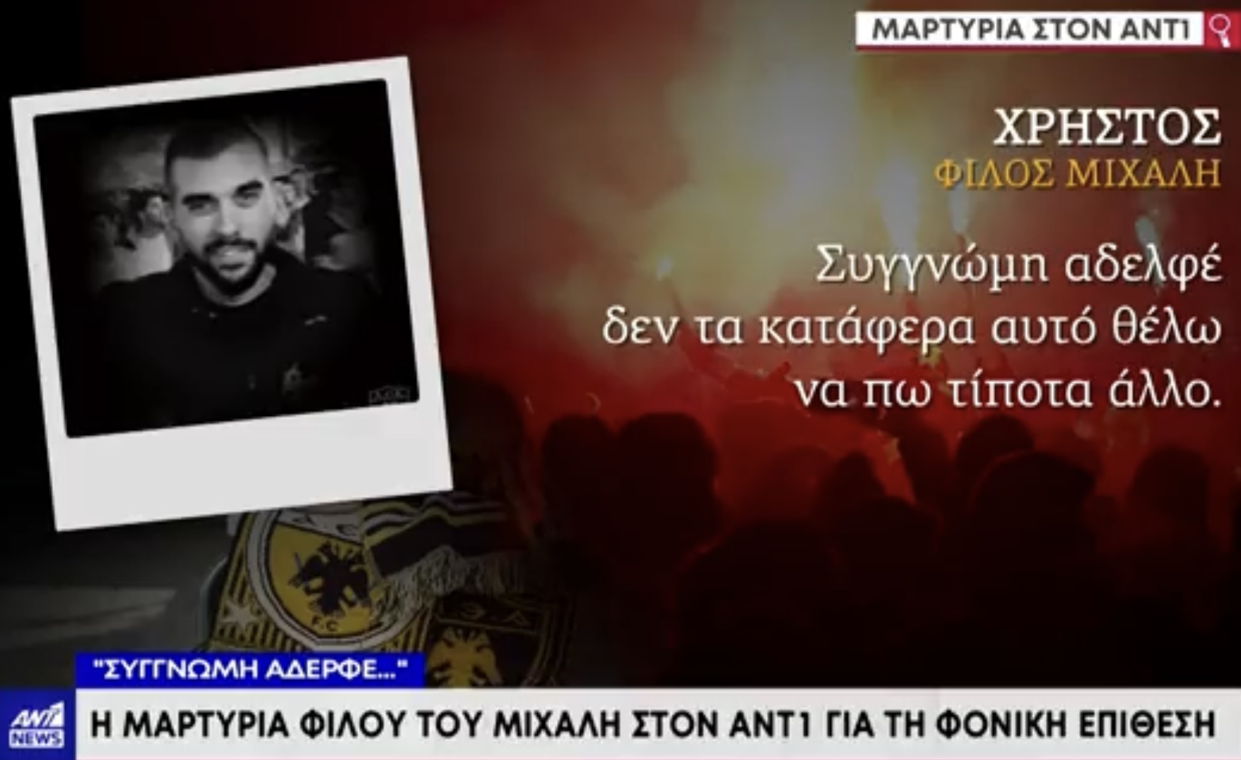 *«Τον Μιχάλη τον γνωρίζω από το γήπεδο. Στην ίδια κερκίδα, εκδρομές μαζί, φαγητό μαζί στις καφετέριες εδώ στη γειτονιά μας στη Φιλαδέλφεια».