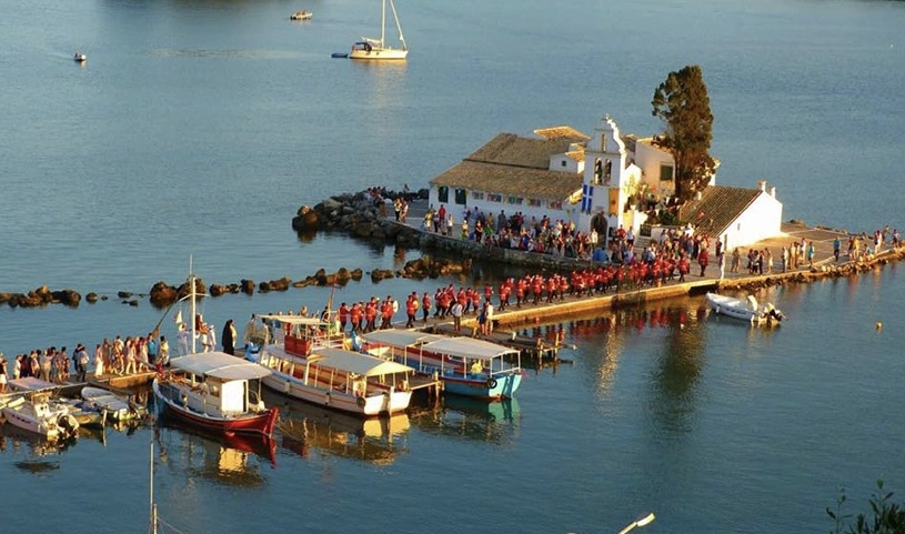Στον Νότο της Κέρκυρας, στη Λευκίμμη, γιορτάζει με ιδιαίτερη λαμπρότητα η Παναγία της Κυράς των Αγγέλων.