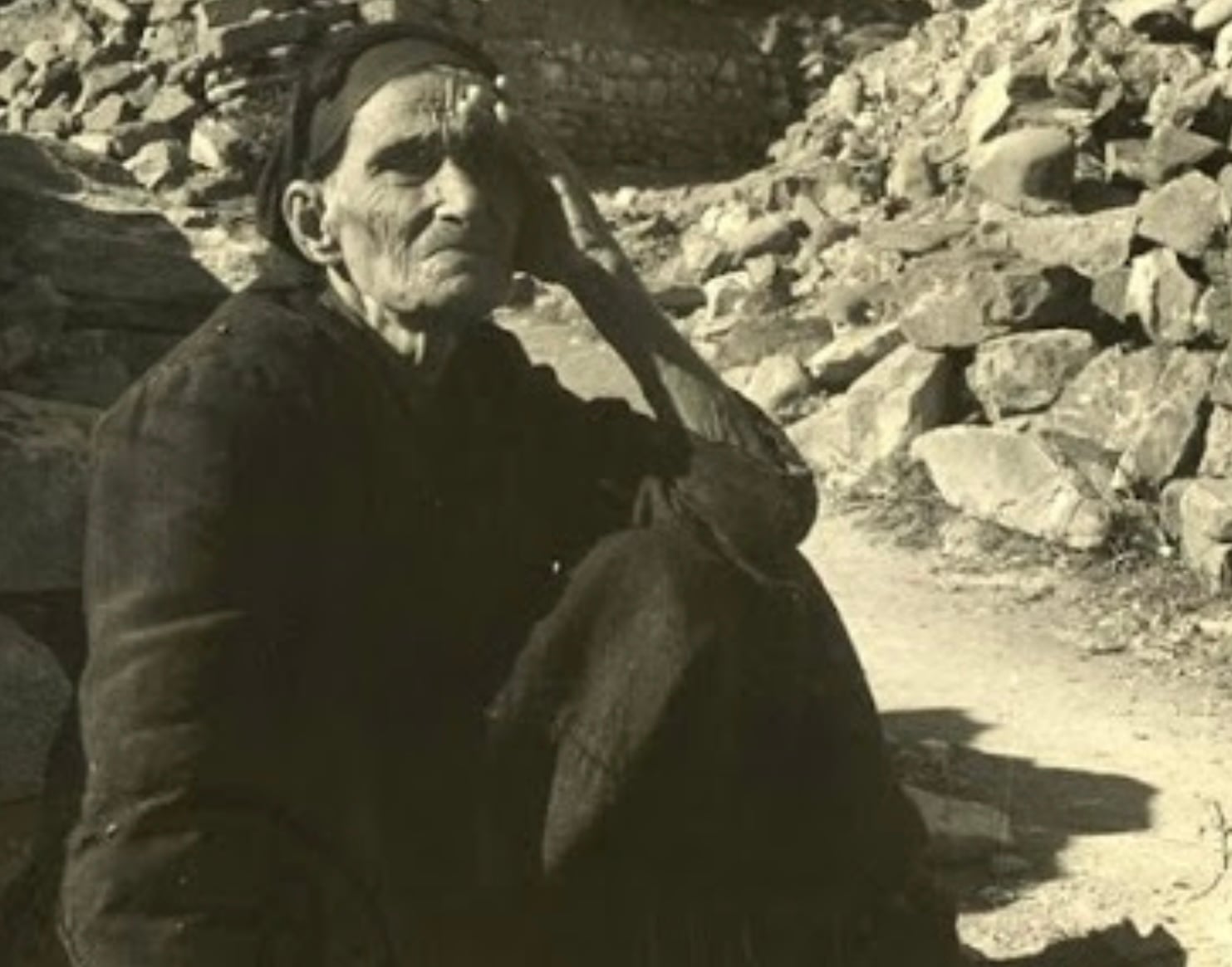 Φωτογραφία: Η απόγνωση ζωγραφισμένη στο πρόσωπο & την ψυχή της χαροκαμένης γυναίκας στην πυρπολημένη από τους κατακτητές Μακρακώμη το 1944 (αρχείο Ε.Λ.Ι.Α.)
