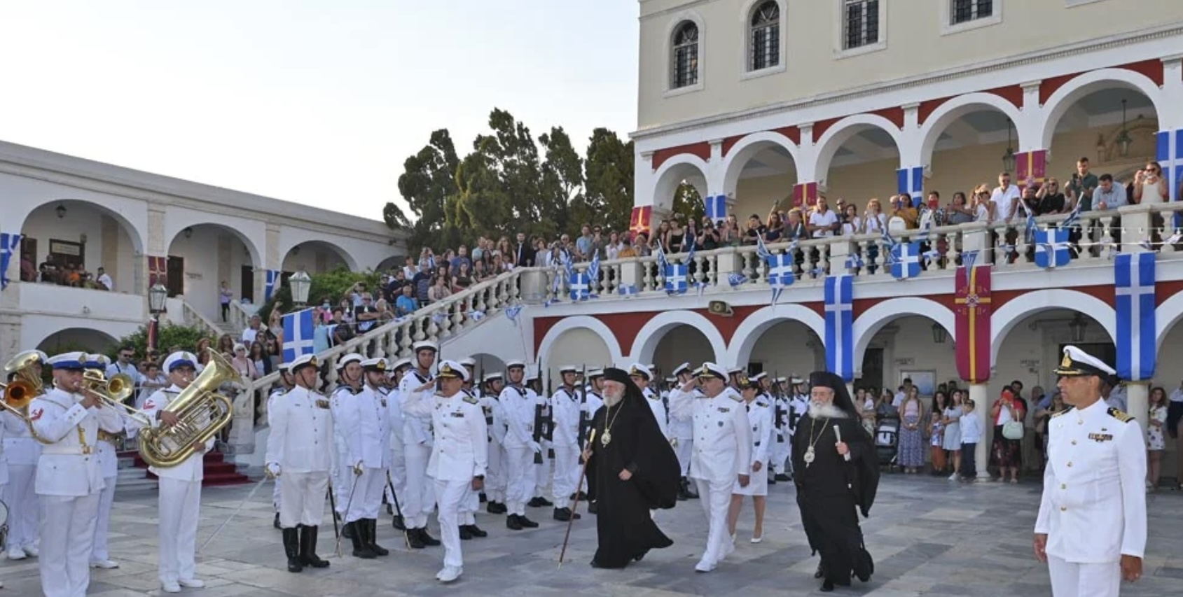 Εκεί βρέθηκε και το Πολεμικό Ναυτικό, σκορπίζοντας ρίγη συγκίνησης όταν χθες η μπάντα του παιάνισε τον Εθνικό μας Ύμνο και οι ναύτες μας τον έψαλλαν όσο πιο δυνατά μπορούσαν, όπως αποτυπώνεται και στο βίντεο από τον αύλειο χώρο της Μεγαλόχαρης, του tinostoday.gr.