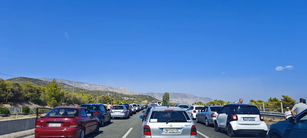 Η ουρά είναι δεκάδες χιλιόμετρα κατά μήκος της Ε.Ο. Αθηνών-Κορίνθου στην κατεύθυνση προς Αθήνα. Μωρά, ηλικιωμένοι, ΆμεΑ, χωρίς νερό εδώ και 6 ώρες! Οι αρχές άφαντες, ούτε ένα μπουκάλι νερό! #Αθηνων-Κορινθου