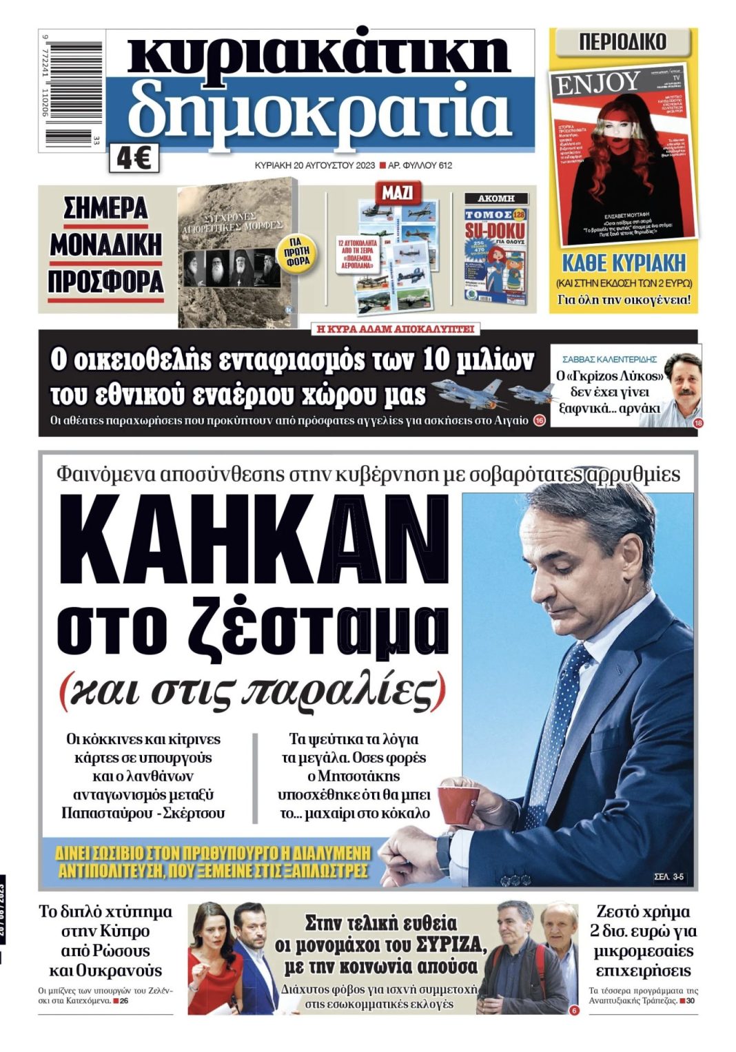 Αποκαλυπτική και αυτή την Κυριακή η εφημεριδα Δημοκρατια.