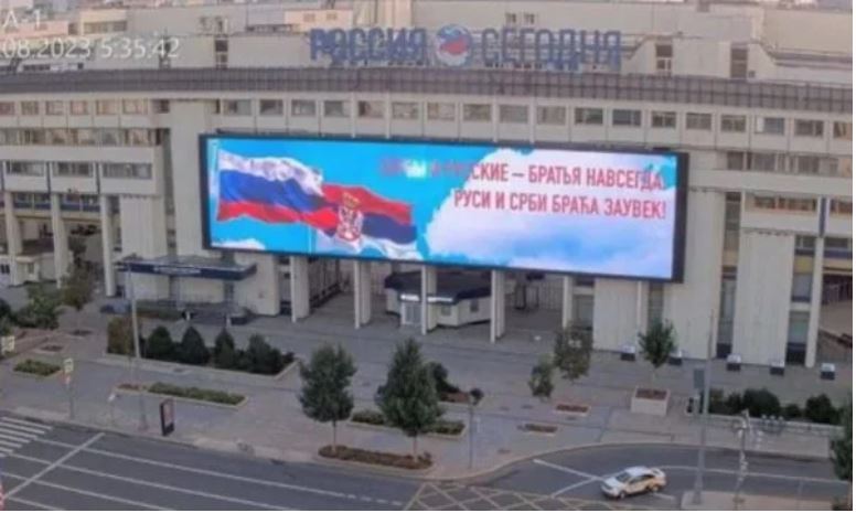 Ένα μεγάλο πανό με την επιγραφή «Σέρβοι και Ρώσοι είναι για πάντα αδέρφια» τοποθετήθηκε στη Μόσχα.