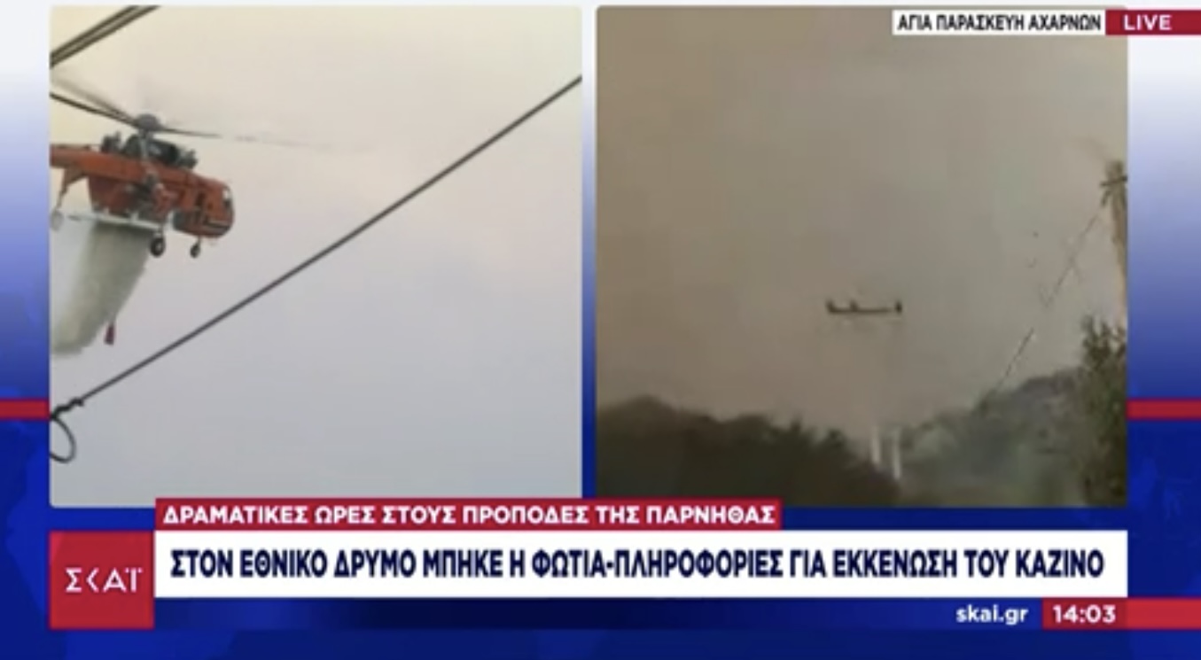 Σύμφωνα με πληροφορίες, παρά τις προσπάθειες των πυροσβεστών, οι φλόγες πέρασαν στον Εθνικό Δρυμό και απειλούν να κάνουν στάχτη τον πράσινο πνεύμονα της Αττικής, την ώρα που δεκάδες σπίτια έχουν παραδοθεί στις φλόγες, στους πρόποδες του βουνού. Μάλιστα, οι άνεμοι που πνέουν αυτή τη στιγμή στην περιοχή, κατευθύνουν το πύρινο μέτωπο προς το Καζίνο, για το οποίο υπάρχουν πληροφορίες ότι εκκενώνεται.