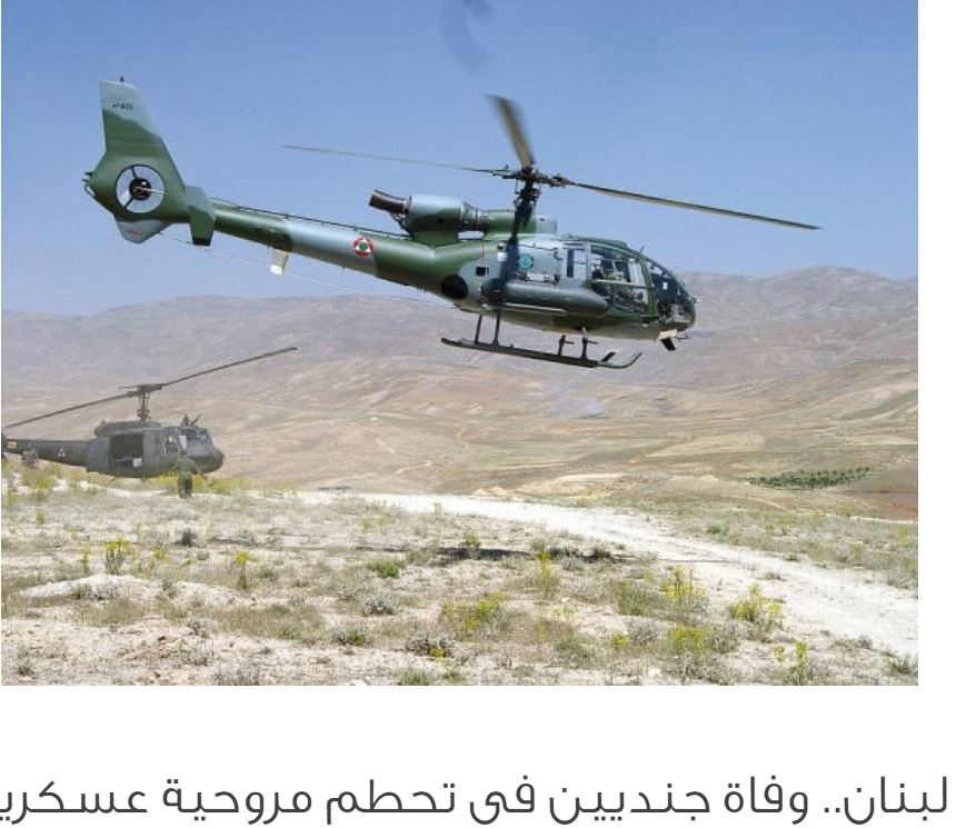 Ο λιβανέζικος στρατός ανακοίνωσε, την Τετάρτη, τον θάνατο δύο στρατιωτών από τη συντριβή στρατιωτικού ελικοπτέρου της Πολεμικής Αεροπορίας, στην περιοχή Χαμάνα.