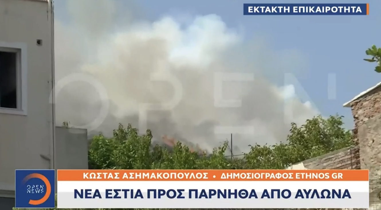 Πριν από λίγο, ξέσπασε μια νέα εστία στην περιοχή Άγιος Γεώργιος του Αυλώνα η οποία κατευθύνεται προς το βουνό της Πάρνηθας!