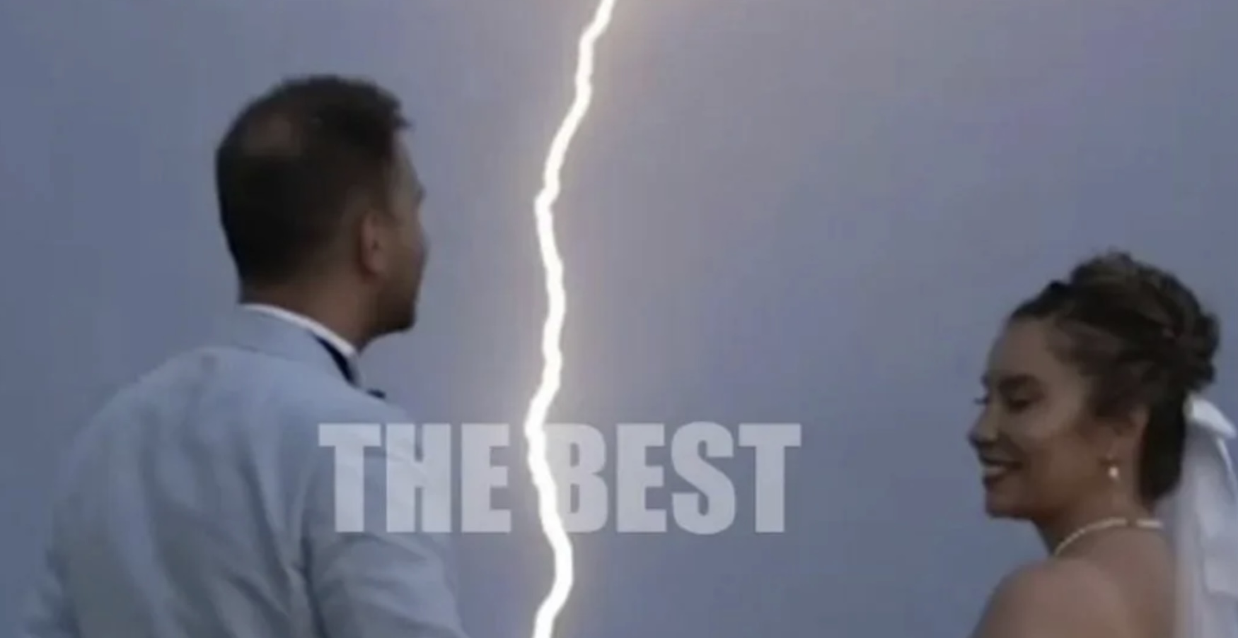 Οι δύο νέοι φιλήθηκαν και η νύφη σήκωσε ψηλά την ανθοδέσμη και τότε «χτύπησε» ο κεραυνός που φώτισε τον ουρανό.
