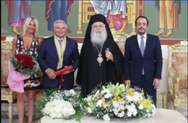 Εφαρμόζοντας σχετική ομόφωνη απόφαση της Ιεράς Συνόδου της Αυτοκέφαλης Αποστολικής Εκκλησίας της Κύπρου, για απονομή της ανώτατης τιμητικής διάκρισης της Εκκλησίας Κύπρου, του χρυσού παρασήμου του Αποστόλου Βαρνάβα, στον Γερουσιαστή R. Menendez, πρόεδρο της Επιτροπής Εξωτερικών Σχέσεων της Αμερικανικής Γερουσίας, ανέλαβα να τον εγκωμιάσω και διά λόγων, όπως συνηθίζεται.
