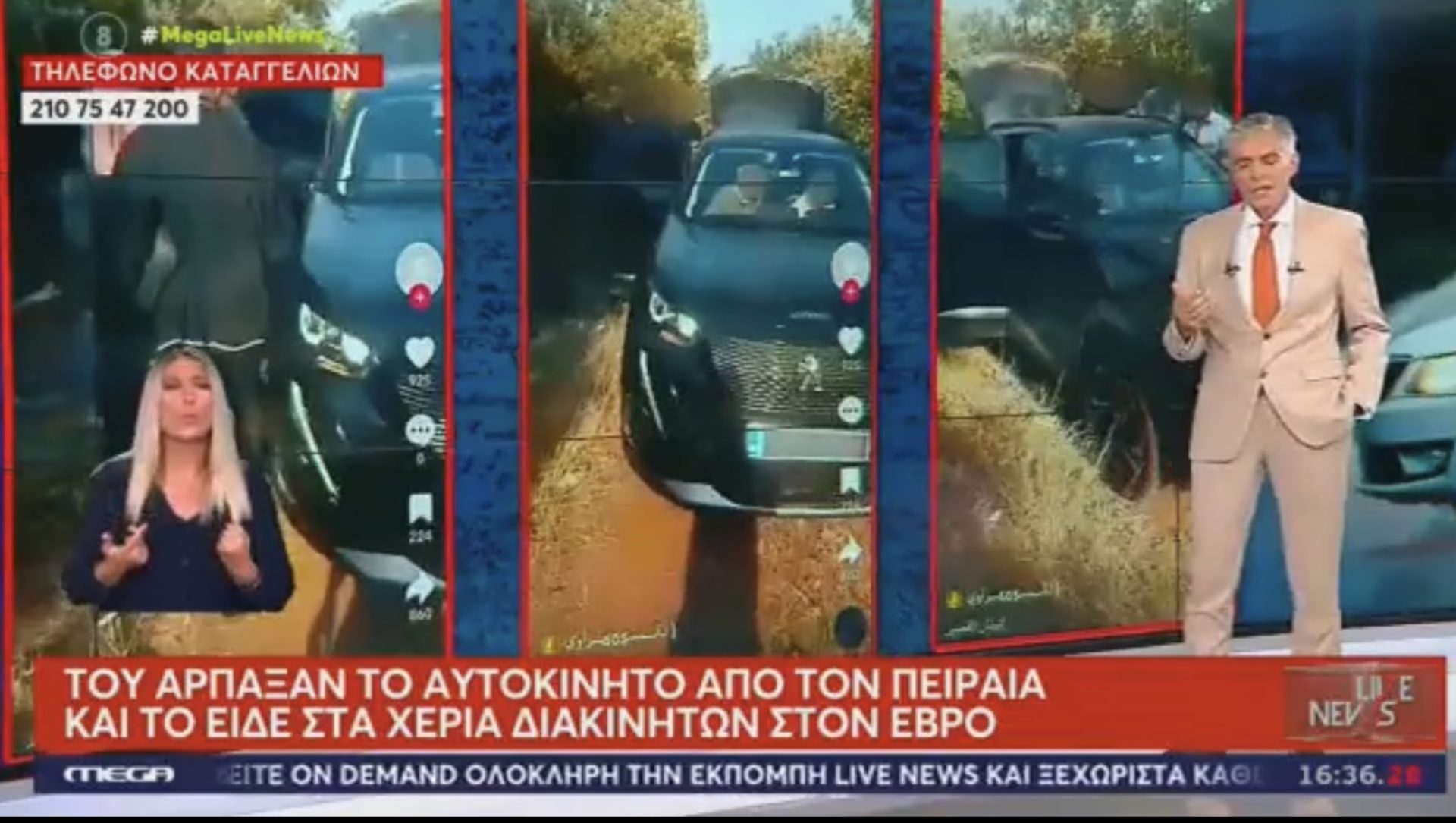 Απίστευτα πράγματα, του έκλεψαν αυτοκίνητο στον Πειραιά και αυτό βρέθηκε στον Έβρο να μεταφέρει μετανστες. Το video έχει αναρτηθεί στο TikTok, στο οποίο διακρίνονται δέκα μετανάστες να μπαίνουν στο κλεμμένο αυτοκίνητο και το παρουσίασε και ο Νίκος Ευαγγελατος στην εκπομπή του.