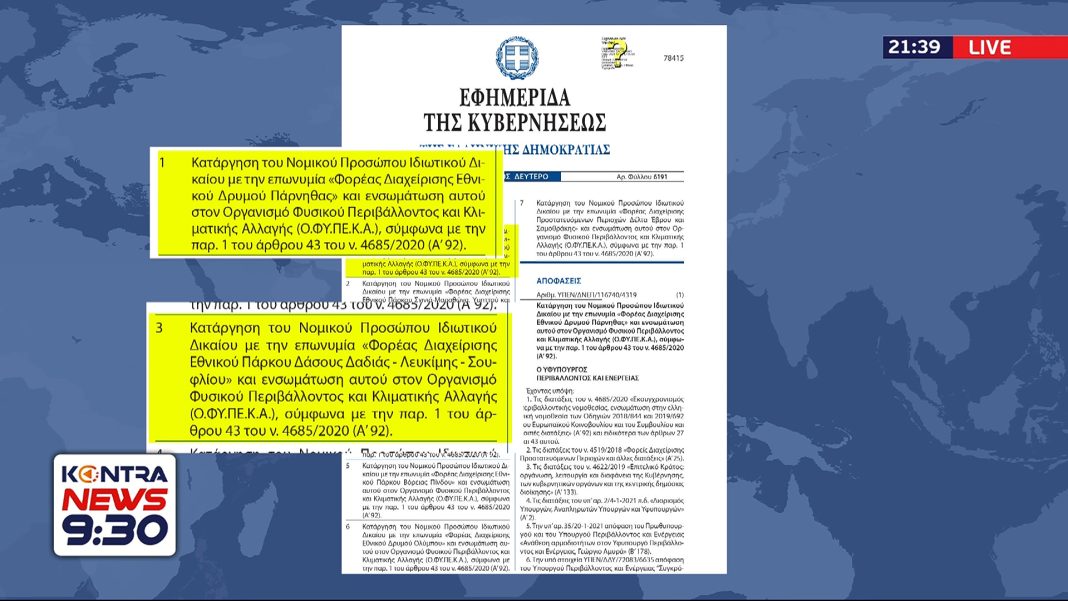 Το 2021 κατάργησαν τους φορείς διαχείρισεις των δασών Πάρνηθας και της Δαδιάς και το 2023 αναζητούν που θα φορτώσουν της ευθύνες