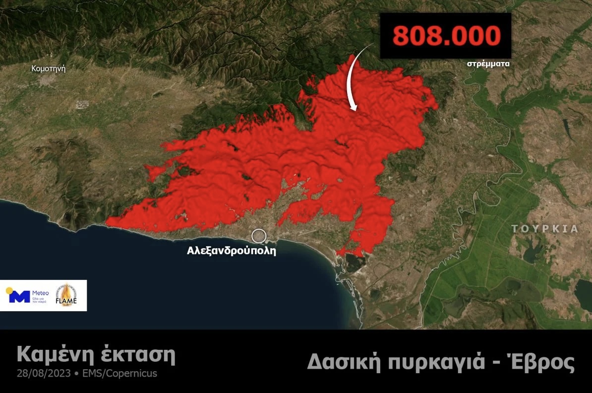 Σχεδόν 900.000 καμένα στρέμματα, μόνο στον Έβρο. Έκταση μεγαλύτερη από την Σιγκαπούρη η τη Νέα Υόρκη.