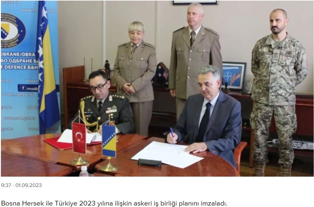 διμερές σχέδιο στρατιωτικής συνεργασίας Τουρκίας-Βοσνίας-Ερζεγοβίνης για το 2023, γράφει τούρκικο δημοσίευμα.