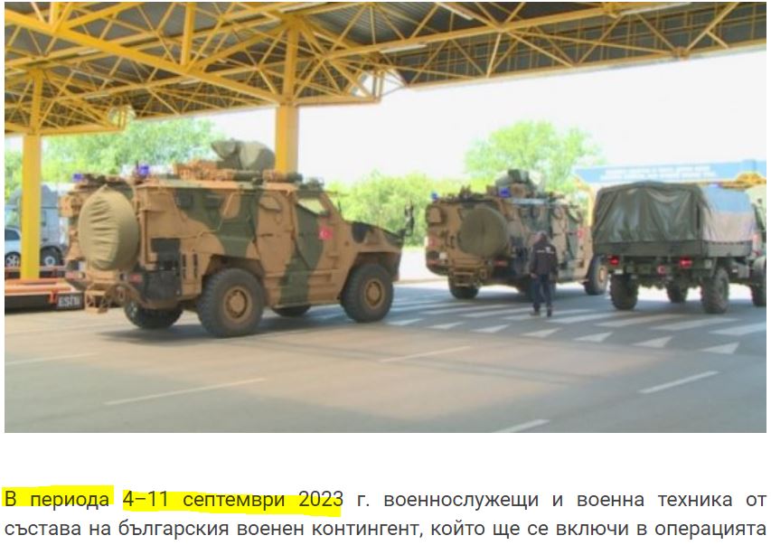 Από σήμερα έως τις 11 Σεπτεμβρίου, στρατιωτικοί και στρατιωτικός εξοπλισμός από το βουλγαρικό στρατιωτικό απόσπασμα, που θα ενταχθεί στην επιχείρηση των Δυνάμεων Σταθεροποίησης του ΝΑΤΟ στο Κοσσυφοπέδιο (KFOR), θα μεταφέρονται στη εθνική οδική υποδομή, ανακοίνωσε το βουλγαρικό υπουργείο Άμυνας.