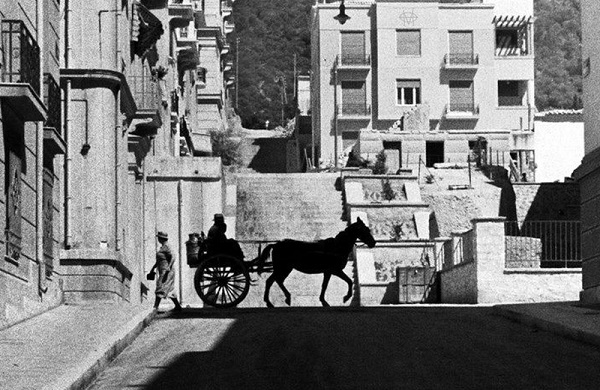 Η φωτογραφία αιφνιδιάζει, καθώς δείχνει μια άλλη Αθήνα, χωρίς κυκλοφοριακό, κόρνες, παρκαρισμένα αυτοκίνητα και με διαβάτες που απολαμβάνουν το περπάτημα. Ο φωτογράφος Alfred Eisenstaedt βάζει μέσα στο κάδρο του ένα άλογο που σέρνει το κάρο, με τον αναβάτη.