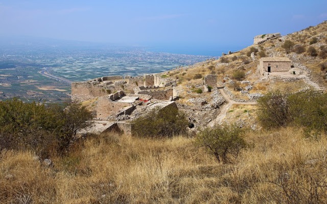 Η περιήγηση στον χώρο γίνεται μέσα σε ερείπια παλαιότερων πύργων και διαφόρων κτισμάτων ενώ από την ενετική κατοχή έχουν απομείνει και κάποια κανόνια. Εντυπωσιακή είναι η δεξαμενή νερού που παραπέμπει στην αρχαία Πειρήνη, την πρώτη κρήνη που απέκτησε ο βράχος χάρη στον βασιλιά Σίσυφο που κατάφερε να λύσει το πρόβλημα της λειψυδρίας.