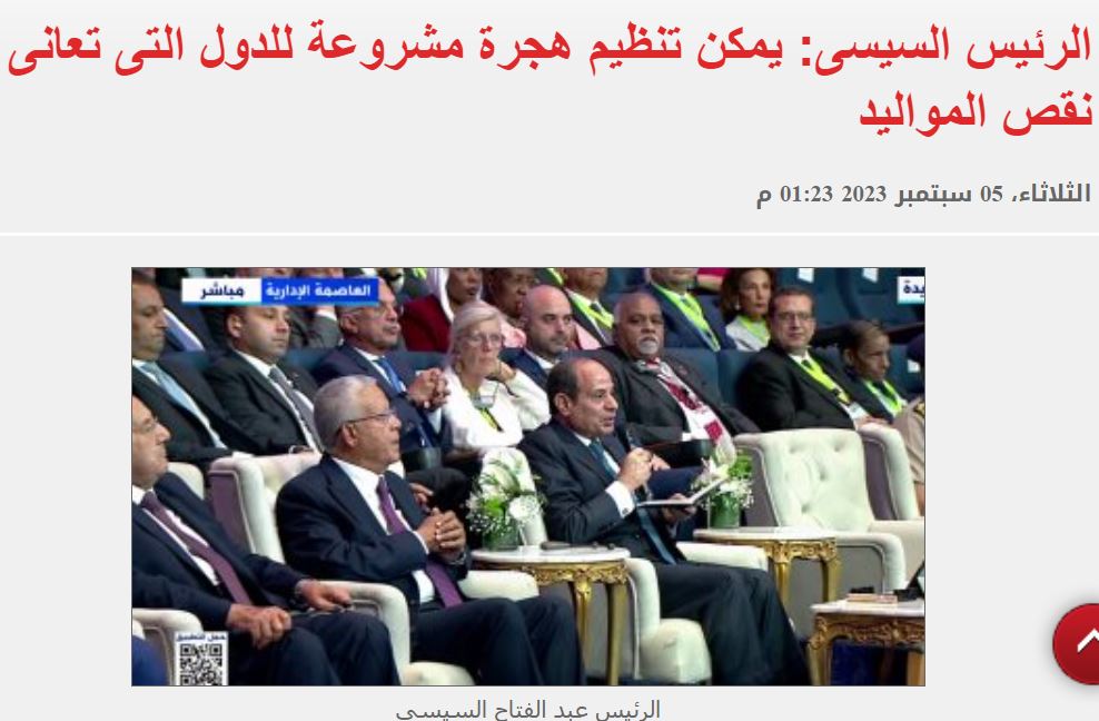 Τόνισε ο πρόεδρος Αλ Σίσι κατά τη διάρκεια της ομιλίας του στη Σύνοδο Διαλόγου στο πλαίσιο των δραστηριοτήτων της πρώτης Παγκόσμιας Διάσκεψης για την Υγεία, τον Πληθυσμό και την Ανάπτυξη.