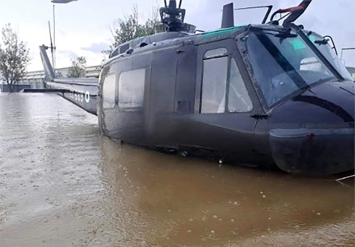 Το νερό έχει φθάσει σχεδόν μέχρι το πιλοτήριο των ελικοπτέρων, όπως σχολιάζει χαρακτηριστικά το Militaire.gr