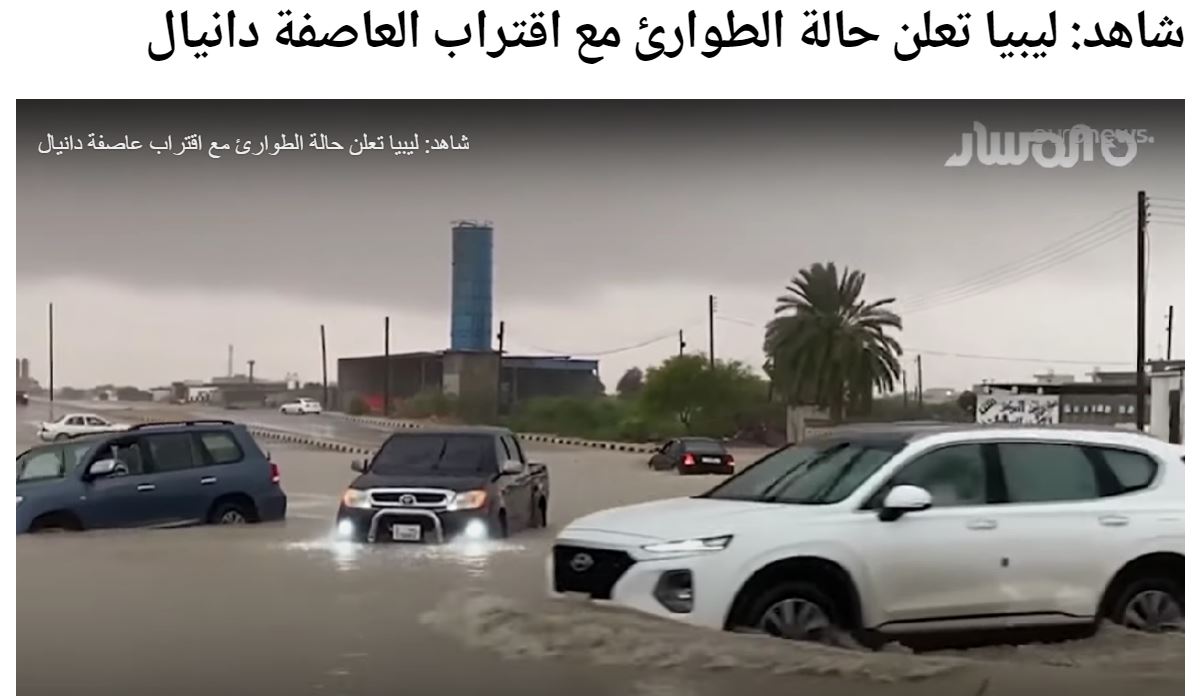 Η μεσογειακή καταιγίδα Ντάνιελ κινήθηκε με πλήρη ισχύ στη Λιβύη από την κεντρική Μεσόγειο, αφού απέκτησε τροπικά χαρακτηριστικά. Προκάλεσε υλικές απώλειες και μεγάλες ζημιές στην Τουρκία, την Ελλάδα και τη Βουλγαρία, ενώ απειλεί και άλλες αραβικές χώρες.
