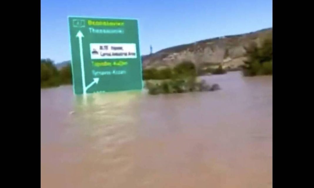 Ένας χρήστης του Twitter μάλιστα ανέβασε βίντεο, στο οποίο έχει καταγράψει τη στιγμή που διασχίζει την Εθνική οδό μετά τα Τέμπη με βάρκα, ενώ μέσα στα νερά φαίνεται η ταμπέλα προς Θεσσαλονίκη.