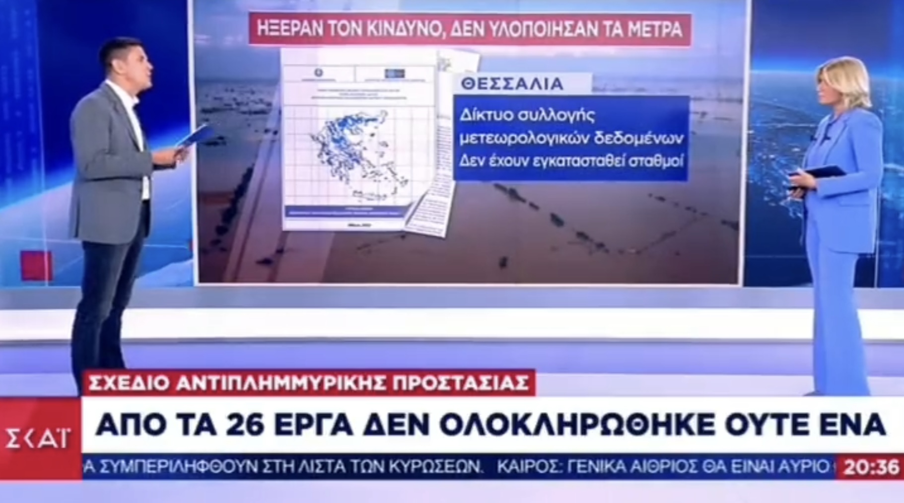 Ο ΣΚΑΙ αποκάλυψε οτι η κυβέρνηση ειχε στα χερια της μελετη του 2018 για τις συνέπειες πλημμυρών σε διαφορες περιοχες στη χωρα .