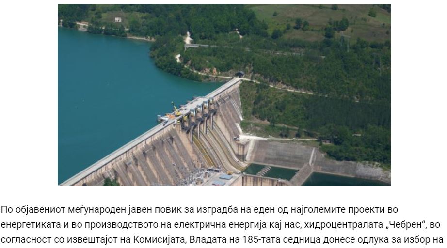 Το διοικητικό συμβούλιο της εταιρείας Ηλεκτρισμού στα Σκοπια, είναι περήφανοι που κατά τη διάρκεια της θητείας τους γίνεται ένα σοβαρό και σταθερό βήμα προς την υλοποίηση του » Τσεμπρέν «, το κράτος και ο AD ESM έχουν την επαγγελματική και κάθε άλλη ετοιμότητα για αυτό το εξαιρετικό αντικείμενο υποδομής να ξεκινήσει την κατασκευή .