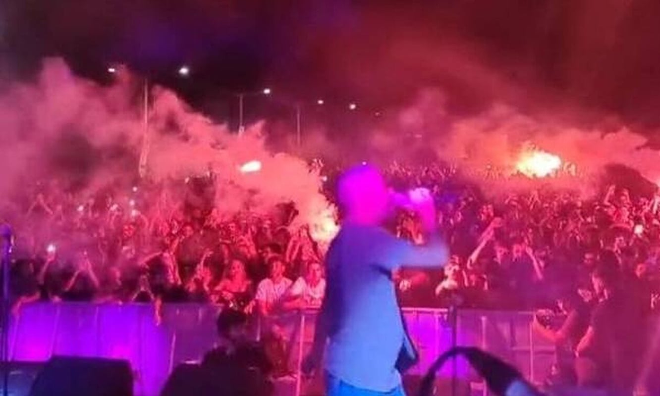 Μόλις έκανε την εμφάνισή του στη σκηνή, ο χώρος έγινε κατακόκκινος από τα δεκάδες καπνογόνα που πήραν φωτιά, όπως μπορείτε να δείτε και στο παρακάτω video.