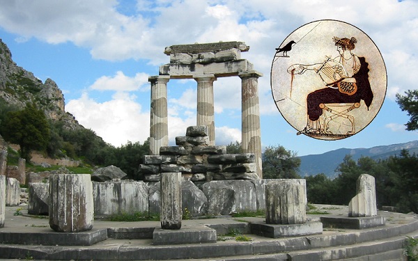 Πρόκειται για το πιο ονομαστό μαντείο του αρχαίου κόσμου. Ήταν αφιερωμένο στον Δελφίνειο Απόλλωνα, σύμβολο του οποίου ήταν το Δελφίνι, από όπου πήρε και το μαντείο την ονομασία του. Υπάρχουν πάμπολλοι μύθοι σχετικά με τη δημιουργία του μαντείου, ένας εκ των οποίων πρεσβεύει ότι τον βωμό του Απόλλωνα στους Δελφούς τον έχτισε ο ίδιος ο θεός του φωτός, που οδήγησε στην περιοχή, έχοντας την δελφίνια μορφή, τους Κνωσίους Κρήτες με τα πλοία τους. Κατά τον ιστορικό Ιουστίνο, στους Δελφούς υπήρχε βαθιά οπή εντός της εκεί πηγής, από την οποία διέφευγε με ορμή ψυχρό αέριο, το οποίο επενεργούσε στο πνεύμα της Πυθίας και μετέδιδε σ’ αυτήν το προφητικό δώρο. Οι αρχαίοι θεωρούσαν ιερές τις γήινες οπές, ως διόδους επικοινωνίας με τα χθόνια βασίλεια.