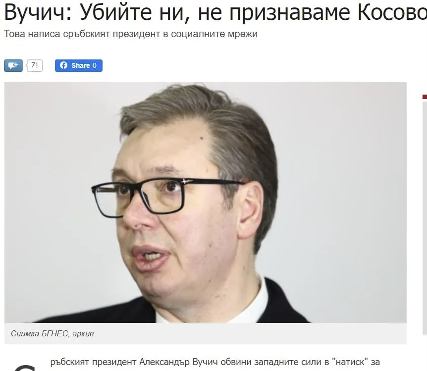 Το BGNES υπενθυμίζει ότι νωρίτερα σήμερα πληροφορίες ανέφεραν ότι στρατιωτικά φορτηγά φορτωμένα με τεθωρακισμένα αυτοκίνητα έφυγαν σήμερα το πρωί στο δρόμο από Κράλεβα προς Ράσκα στα σύνορα με το Κοσσυφοπέδιο.