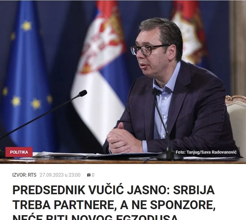 Ο ίδιος τόνισε ότι η Σερβία έναντι όλων αυτών των προκλήσεων θέλεις φίλους εταίρους και όχι χορηγούς προς τη χώρα, όπως σημειώνει η happytv.