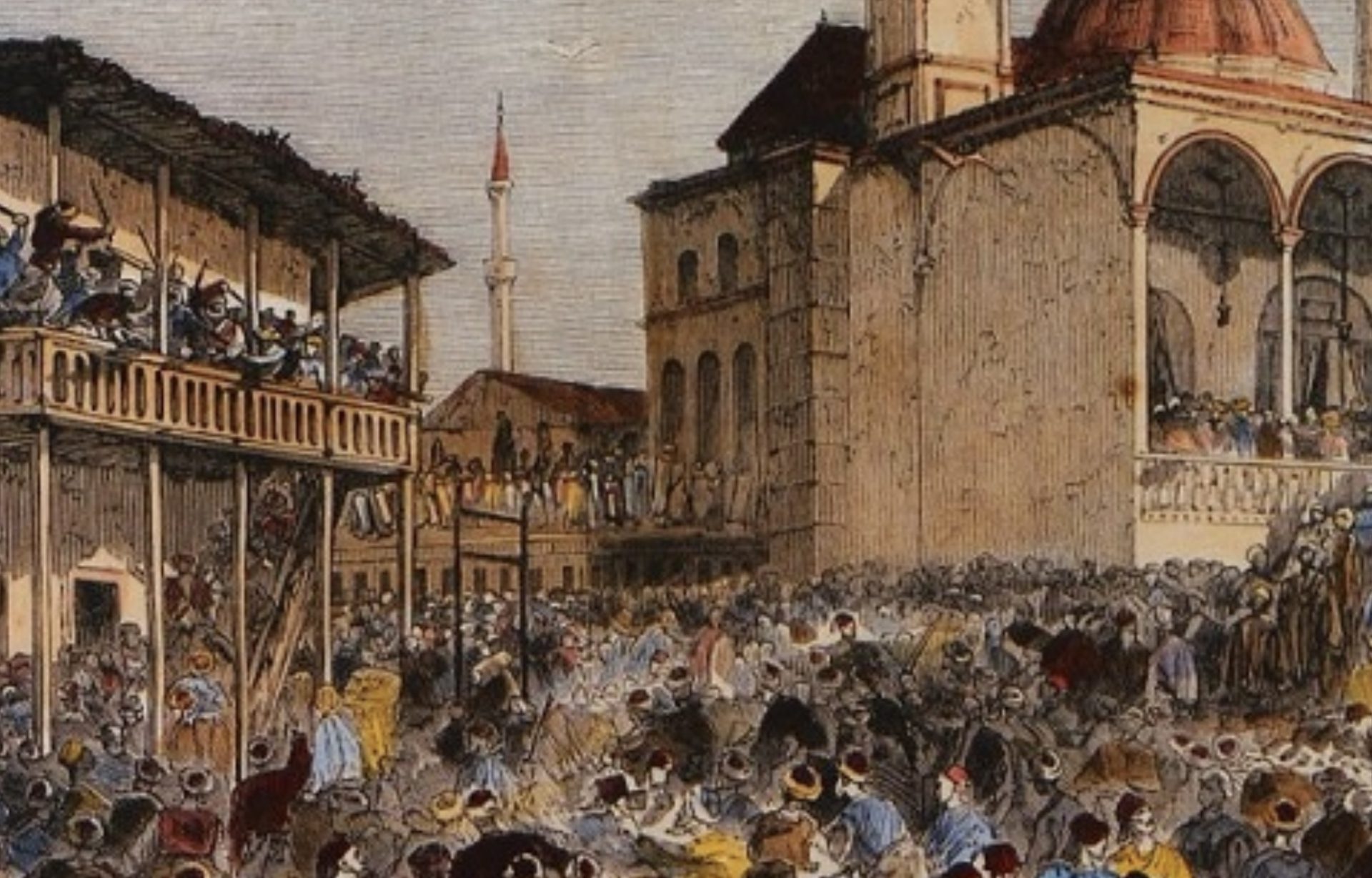 Τότε κατευθύνθηκαν προς το Κονάκι ο Ζυλ Μουλέν, πρόξενος της Γαλλίας, και ο Ερρίκος Άμποτ, πρόξενος της Γερμανίας. Οι πρόξενοι δεν μπόρεσαν ποτέ να φτάσουν στον προορισμό τους, καθώς βρέθηκαν στο τζαμί, όπου κρατήθηκαν ως όμηροι, με στόχο να γίνει ανταλλαγή με τη νεαρή γυναίκα. Ο βαλής κι ο διοικητής της αστυνομίας προσπάθησαν να κατευνάσουν τους συγκεντρωμένους και να απελευθερώσουν τους προξένους, μάλλον όμως χωρίς ιδιαίτερο ζήλο. Τελικά, ο όχλος εισέβαλε στο δωμάτιο που κρατούνταν οι Μουλέν και Αμπότ και τους σκότωσε χτυπώντας τους με ξύλα και σίδερα.