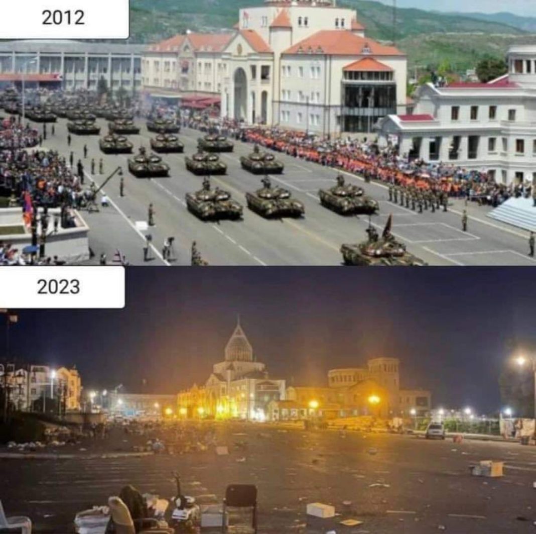 Δείτε τώρα την χαρακτηριστική φωτογραφία από το Στεπανακέρτ, για να καταλάβετε πως προδίδεται μια χώρα απέναντι στον τούρκο. Το 2012, το Στεπανακέρτ ήταν απόρθητο. Μόλις ο προδότης παρέδωσε τα όπλα, το Στεπανακέρτ αφανίστηκε. Ας αντιδράσουμε τουλάχιστον εμείς πριν είναι αργά.