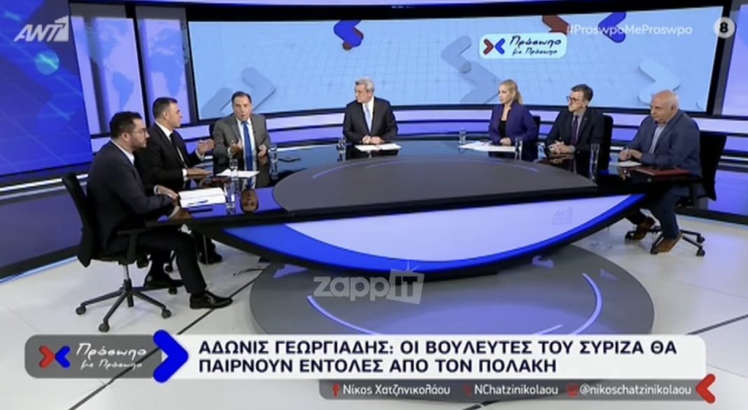 Ανέβηκαν οι τόνοι στην εκπομπή του ΑΝΤ1 «Πρόσωπο με πρόσωπο», όταν ΑδωνιςΓεωργιάδηςκαι Γιώργος Καραμέρος, αρπάχτηκαν με αφορμή τον Παυλο Πολάκη, τον οποίο ο Κασσελάκης έχρισε χθες συντονιστή του κοινοβουλευτικού έργου.