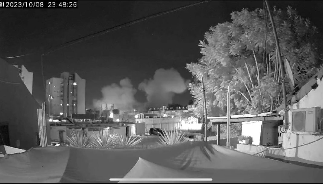 Πλάνα από τη στιγμή που πύραυλος από τη Γάζα προσγειώθηκε στην πόλη Ασκελόν πριν από λίγα λεπτά.