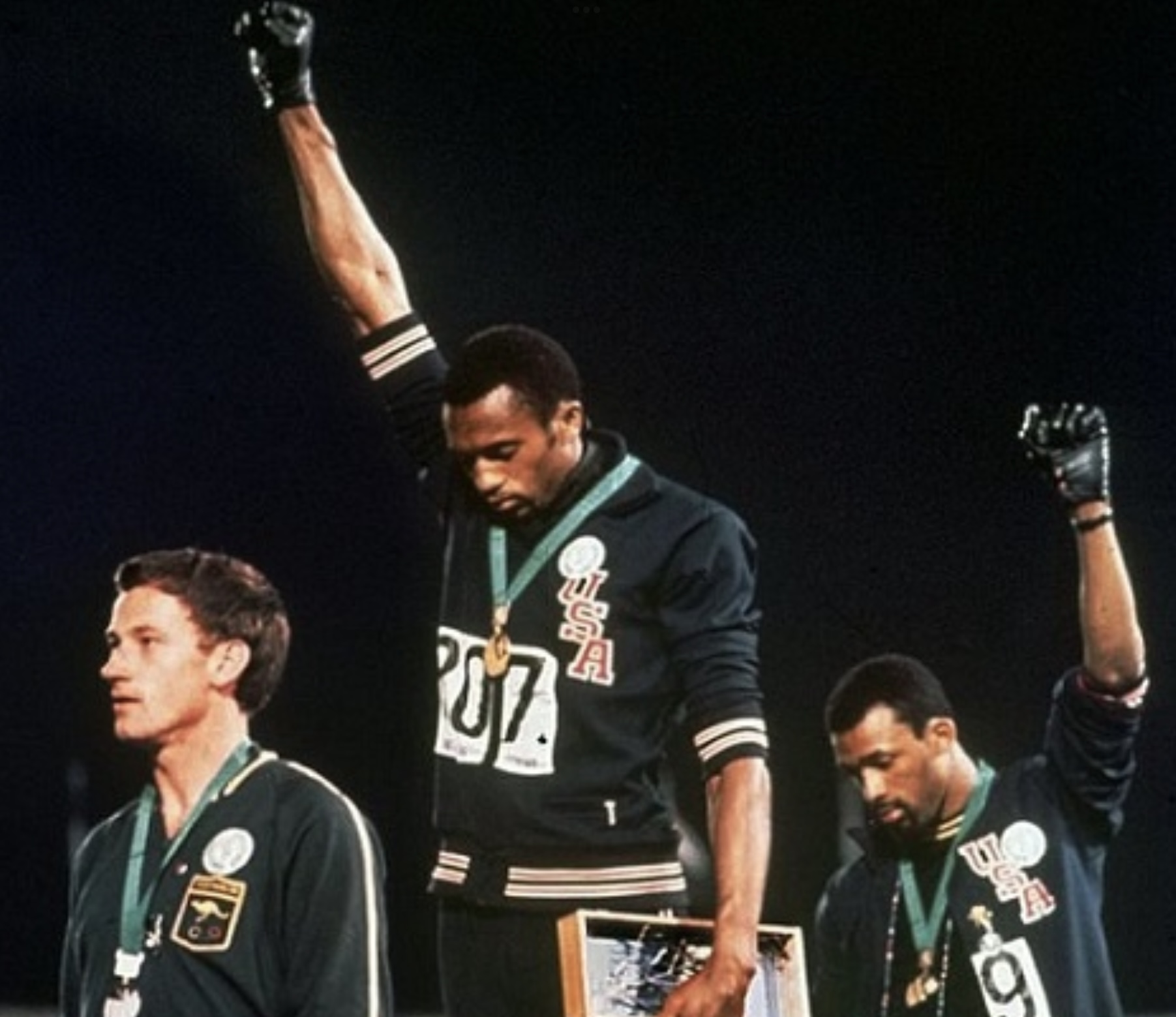 Ήταν 16 Οκτωβρίου του 1968, όταν στο βάθρο των νικητών του τελικού των 200μ στους Ολυμπιακούς Αγώνες του Μεξικού, ο νικητής Τόμι Σμιθ και ο τρίτος του τελικού Τζον Κάρλος, σήκωσαν τις υψωμένες γροθιές τους φορώντας μαύρα γάντια.