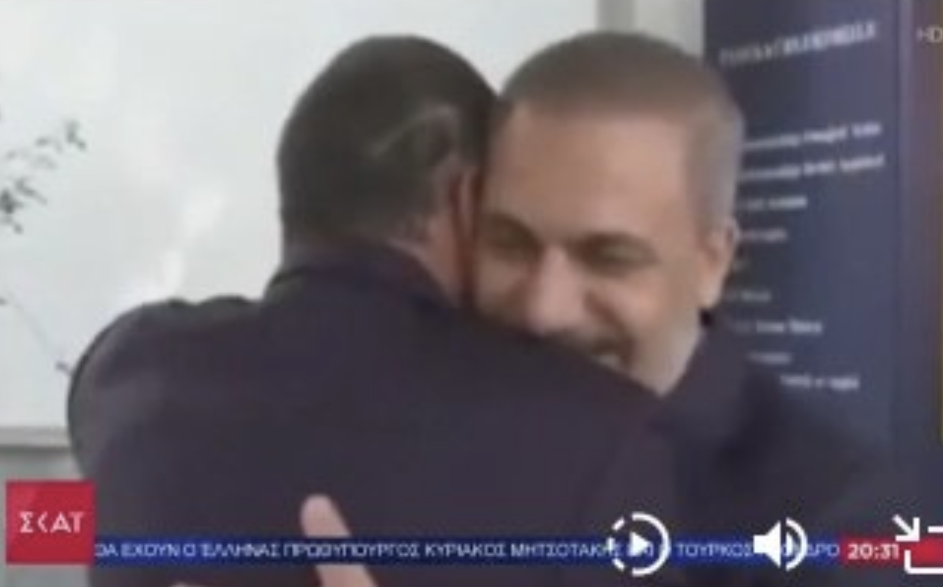 Ο Γεραπετριτης ασπάζεται τον Διοικητή της ΜΙΤ….όχι κάποιας ΜΚΟ…αλλά της ΜΙΤ που δολοφονεί, απαγάγει, βασανίζει, φακελωνει, εξοπλίζει τον ISIS, προστατεύει τη Χαμάς στην Τουρκία…Και ο Μητσοτάκης εκφράζει την αλληλεγγύη του στο Ισραήλ…
